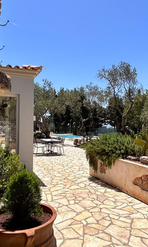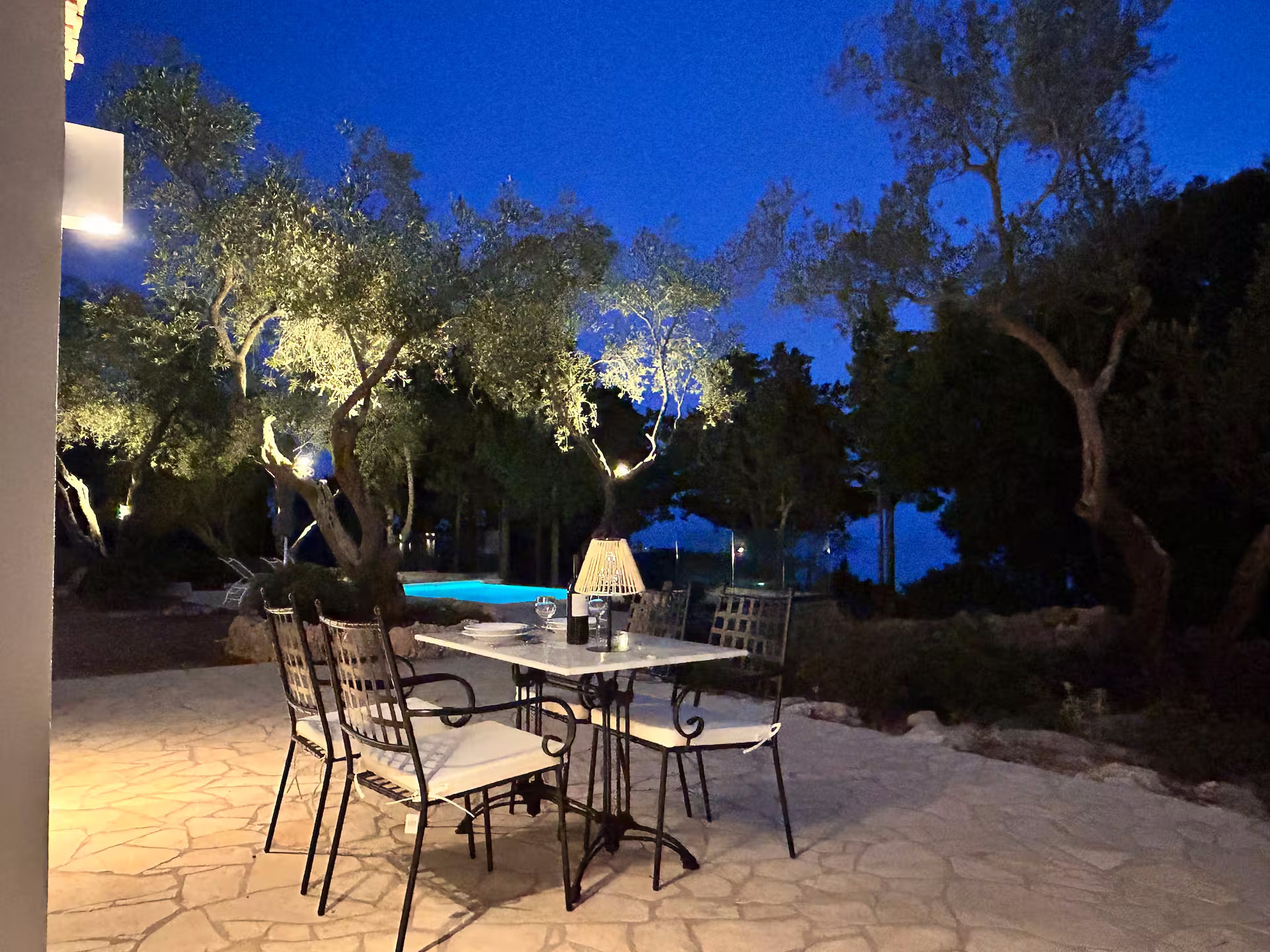 A shaded patio surrounded by olive trees and local flora. Ideal for dining, reading, or simply enjoying the silence.